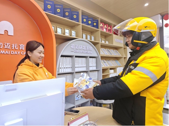 外卖员正在配送附有安全小贴纸的快件(央广网发 四川省安全生产委员会办公室供图)